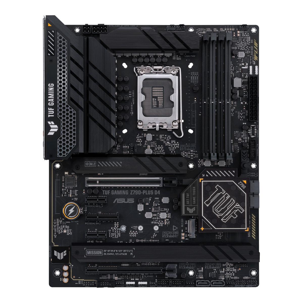 The ASUS TUF GAMING Z790-PLUS D4 is an ATX motherboard designed for Intel LGA1700 processors, featuring the Z790 chipset and DDR4 memory support up to 5333MHz. It offers robust connectivity with two PCIe x16 slots, four M.2 slots, and four SATA ports, suitable for mid-range to high-end gaming and productivity builds. This board provides a balanced feature set for users prioritizing DDR4 compatibility and a stable platform over the latest DDR5 technology, making it a cost-effective option for current-generation Intel CPUs.